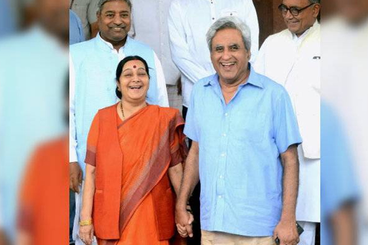 স্বামী স্বরাজ কৌশলের সঙ্গে সুষমা। -ফাইল ছবি