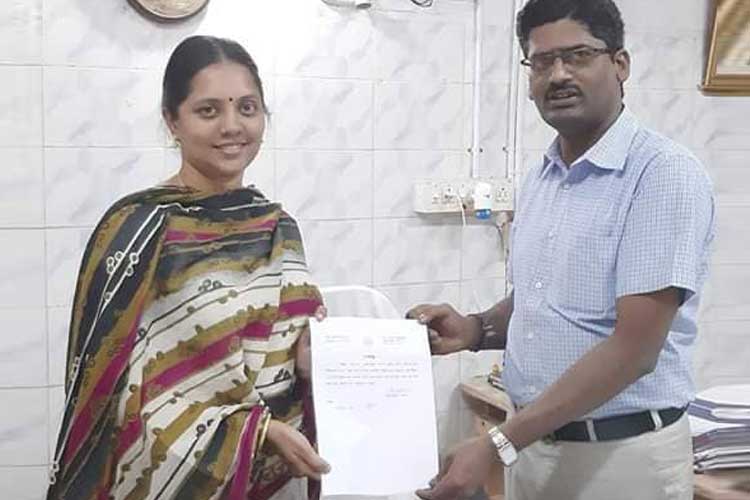 তিরুপাত্তুরের তহশিলদার টি এস সাথিয়ামুর্তি স্নেহার হাতে তুলে দিলেন ‘নো কাস্ট নো রিলিজিয়নের শংসাপত্র’। ছবি স্নেহার ফেসবুকের সৌজন্যে।