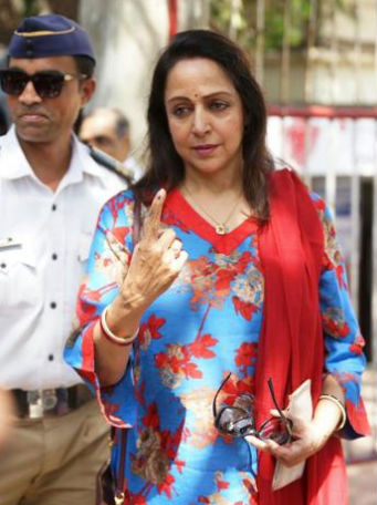 ভোট দিলেন হেমামালিনী। ছবি: সংগৃহীত।