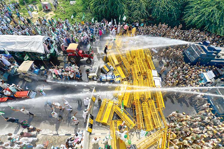 এন্তার লাঠিচার্জের সঙ্গে চলল জলকামানও। মঙ্গলবার।