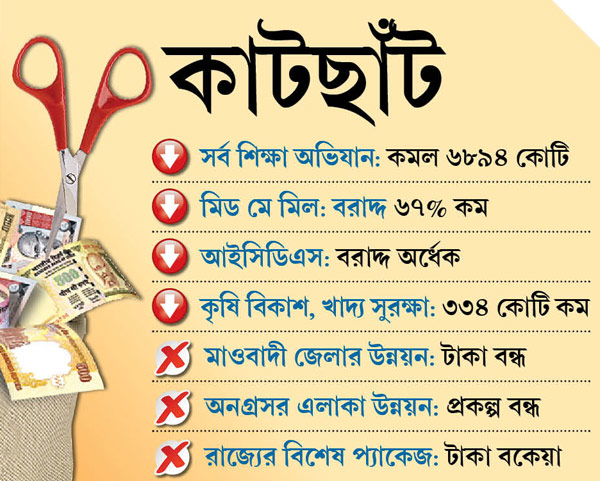 নবান্ন সূত্রে বলা হচ্ছে— সর্বশিক্ষা অভিযান, আইসিডিএস, মিড-ডে মিল, খাদ্য সুরক্ষা, মাওবাদী অধ্যুষিত জেলাগুলির উন্নয়ন থেকে অনগ্রসর এলাকা উন্নয়ন তহবিলের মতো বিভিন্ন খাতে মোদী সরকার অর্থ বরাদ্দ কমিয়েছে। এই সব প্রকল্পে কেন্দ্র আগে যে অনুপাতে টাকা দিত, এখন তার থেকে অনেক কম দিচ্ছে। ফলে যে ফাঁক তৈরি হচ্ছে, ঋণের বোঝা মাথায় নিয়ে চলা পশ্চিমবঙ্গের পক্ষে তা পূরণ করা সম্ভব নয়। সে কারণে টান পড়ছে সামাজিক প্রকল্পে। মমতা মোদীকে জানাবেন, কেন্দ্রের এই একতরফা সিদ্ধান্তে সমাজের নিচুতলার, আর্থিক ভাবে পিছিয়ে থাকা মানুষই বিপদে পড়ছেন।
