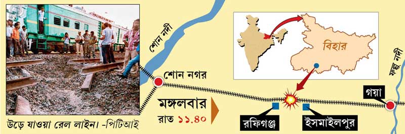 পুলিশ সূত্রের খবর, মঙ্গলবার মাঝরাত থেকে বিহারে ২৪ ঘণ্টার বন্ধ ডেকেছিল মাওবাদী সংগঠনগুলি। এই বন্ধের জন্য বিশেষ নজরদারিও ছিল। তবু বিপর্যয় এড়ানো গেল না। রেল সূত্রের খবর, ইসমাইলপুর পার করে পাইলট ইঞ্জিনটি যখন রফিগঞ্জের দিকে যাচ্ছিল, সেই সময়েই লাইনের নীচে বিস্ফোরণ ঘটে। ইঞ্জিনটি লাইনচ্যুত হয়ে যায়। এই ঘটনায় কোনও প্রাণহানি হয়নি। তবে ইঞ্জিনটির তলায় বিভিন্ন যন্ত্রাংশের ক্ষতি হয়েছে।