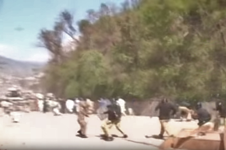 বিক্ষোভকারীদের উপর যথেচ্ছ লাঠি চালানো থেকে শুরু করে তাঁদের লক্ষ্য করে গুলিও চালায় পাক সেনা ও আধা সেনা। ছবি: ভিডিয়ো থেকে নেওয়া।