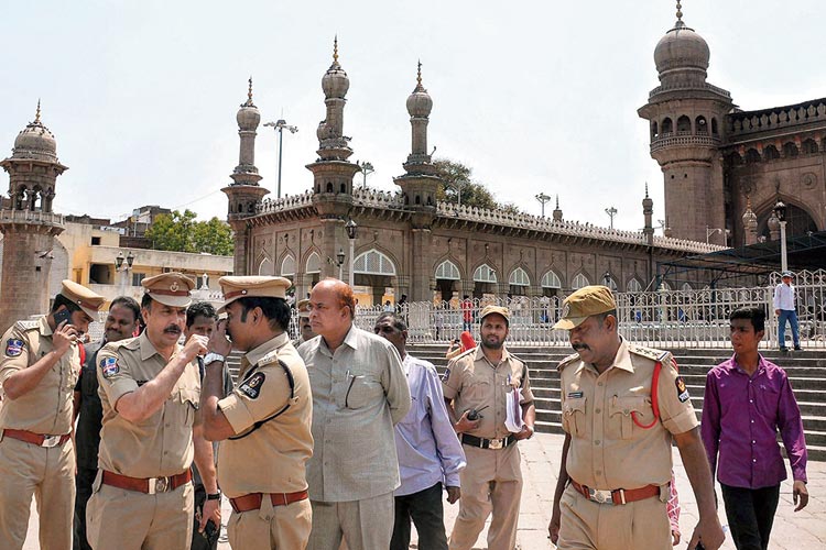 মসজিদে পুলিশকর্তারা। ছবি: পিটিআই