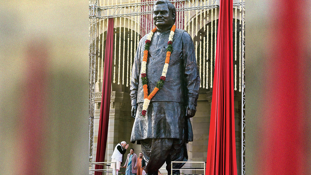 শ্রদ্ধা: পূর্বসূরি অটলবিহারী বাজপেয়ীর জন্মবার্ষিকীর অনুষ্ঠানে প্রধানমন্ত্রী নরেন্দ্র মোদী। বুধবার লখনউয়ে। পিটিআই