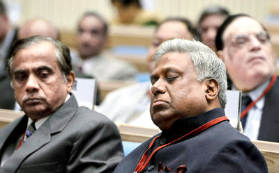 দর্শকাসনে সিবিআই-প্রধান রঞ্জিত সিন্হা। শুনলেন না কিছুই। কারণ, তিনি ঘুমোচ্ছেন।