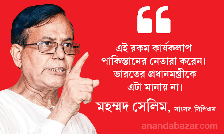 বামেরাও মোদীর এই অবস্থানের নিন্দায় সরব। সিপিএম পলিটব্যুরো সদস্য তথা সাংসদ মহম্মদ সেলিমের মন্তব্য, ‘‘নরেন্দ্র মোদীর কাছ থেকে এটাই প্রত্যাশিত। এই প্রথম বার নয়, আগেও তিনি বিদেশে গিয়ে দেশের রাজনীতি নিয়ে মুখ খুলেছেন। এটা ভারতীয় পরম্পরার বিরোধী। পাকিস্তানের নেতারা এই রকম করেন। ভারতীয় নেতাদের কাছ থেকে এটা প্রত্যাশিত নয়। বিদেশ নীতির প্রশ্নে আমাদের দেশে একটা রাজনৈতিক ঐকমত্য ছিল। সেটা নরেন্দ্র মোদী ভেঙে দিয়েছেন। পরিণত গণতন্ত্র হিসেবে ভারতের যে উজ্জ্বল ভাবমূর্তি রয়েছে বিদেশে, এ বার মোদী সেটাকেও ভাঙছেন।’’ রাহুল গাঁধীর বিদেশ সফরের প্রসঙ্গও টেনে এনেছেন সেলিম। তিনি বলেছেন, ‘‘সম্প্রতি রাহুল গাঁধী বাহরাইন সফরে গিয়েছিলেন। রাহুল সরকারি সফরে যাননি, সরকারি খরচেও যাননি। এ ধরনের সফরে দেশের রাজনীতি নিয়ে মুখ খোলায় বাধা নেই। তা সত্ত্বেও রাহুলের নানা মন্তব্যকে বিজেপি তীব্র আক্রমণ করেছে। এ বার মোদী সরকারি খরচে, রাষ্ট্রীয় সফরে বিদেশে গিয়ে যা বললেন, তার কী ব্যাখ্যা দেবে বিজেপি?’’