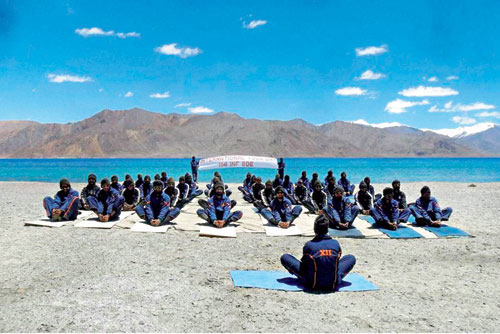 সেনাদের ব্যায়াম। সিয়াচেনে, বিশ্ব যোগ দিবসে।