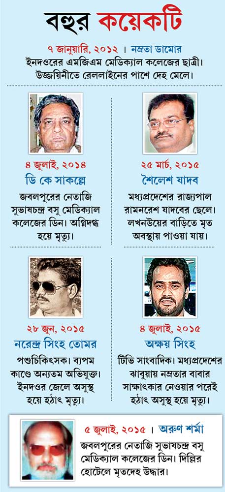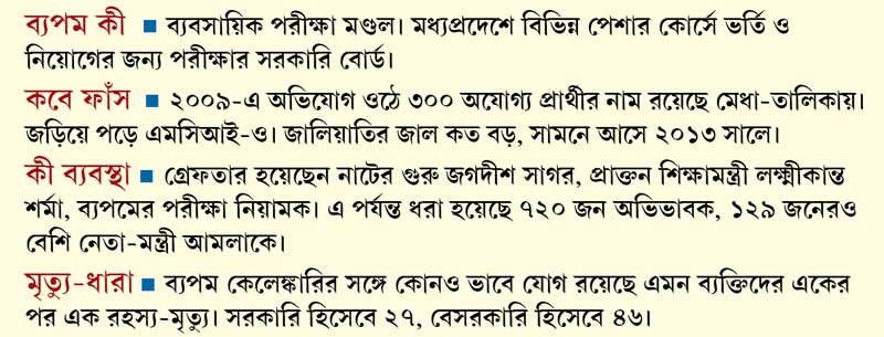 ব্যপম-কাণ্ডে আবার এক রহস্য-মৃত্যু। যা শুধু মধ্যপ্রদেশের মুখ্যমন্ত্রী শিবরাজ সিংহ চৌহানের সমস্যাই দ্বিগুণ করে দিল না, আরও জলে ঠেলে দিল নরেন্দ্র মোদী ও তাঁর সরকারকে।