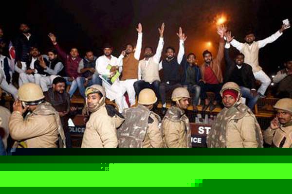 বহিষ্কারের পর মুলায়মের বাসভবনের সামনে অখিলেশ সমর্থকদের বিক্ষোভ। ছবি: পিটিআই।
