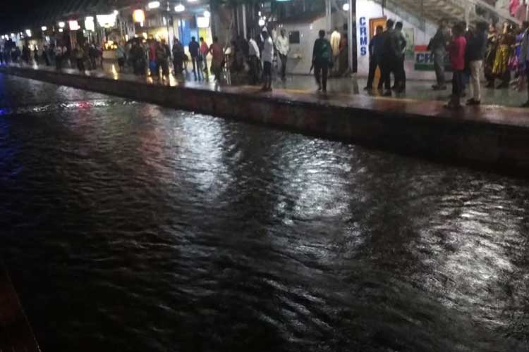 ঢুকতে হলে ট্রেনকে যে হতে হবে জাহাজ! বদলাপুর স্টেশনের প্ল্যাটফর্ম। শুক্রবার রাতে। ছবি- টুইটারের সৌজন্যে
