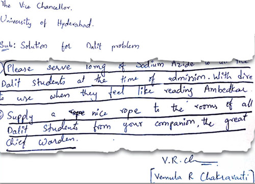 রং বদলের স্বপ্ন দেখা ছেলেটা গত বছর থেকেই কেমন যেন ম্রিয়মাণ হয়ে যেতে শুরু করেছিল। বুঝতে পারছিলাম, ধীরে ধীরে হতাশা গ্রাস করছে ওকে। চারপাশে এত অন্যায়, এত অবিচার— এ সবের বিরুদ্ধে যে ও কিছুই করতে পারছে না, এই বোধটাই কুরে কুরে খেতে শুরু করেছিল রোহিতকে। মাসখানেক আগে বিশ্ববিদ্যালয়ের উপাচার্যকে একটি চিঠি লেখে রোহিত। সেখানে ও লিখেছিল, ‘‘দলিত পড়ুয়াদের হয় বিষ, না হয় একটা দড়ি দিন। এই বিশ্ববিদ্যালয়ে দলিত পড়ুয়াদের অবস্থা এতটাই ভয়াবহ যে, কর্তৃপক্ষেরই স্বেচ্ছামৃত্যুতে সাহায্য করা উচিত!’’