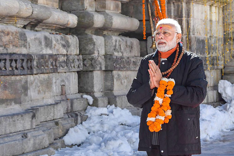 কেদারনাথ মন্দিরে প্রধানমন্ত্রী নরেন্দ্র মোদী। ছবি: পিটিআই।