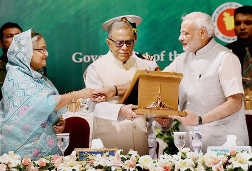 বাংলাদেশের মুক্তিযুদ্ধে ভারতের ভূমিকার কথা স্মরণ করে রাষ্ট্রপতি হামিদ এ দিন ভারতের তৎকালীন প্রধানমন্ত্রী অটলবিহারী বাজপেয়ীকে ‘বাংলাদেশ মুক্তিযুদ্ধ সম্মান’ দেন। অসুস্থতার জন্য বাজপেয়ী অনুপস্থিত থাকায় সফররত নরেন্দ্র মোদীর হাতে ওই সম্মাননা তুলে দেওয়া হয়। বঙ্গভবনের ওই অনুষ্ঠানের বক্তৃতায় প্রধানমন্ত্রী শেখ হাসিনা মোদীকে “বাজপেয়ীর যোগ্য উত্তরসূরি এবং বাংলাদেশের বন্ধু” বলে উল্লেখ করেন। বাজপেয়ীর হয়ে সম্মাননা গ্রহণ করে মোদী বলেন, “অটলবিহারীর মতো এমন ভারতরত্নকে বাংলাদেশ সম্মানিত করছে। ভারতবাসীর জন্য এ এক গৌরবের মুহূর্ত।”
