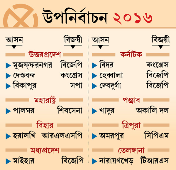 উত্তরপ্রদেশের দেওবন্দ ও কর্নাটকে ইয়েদুরাপ্পার প্রাক্তন দলের দখলে থাকা আসন ছাড়া আর কোনও সুখবর নেই কংগ্রেসের ঝুলিতে।