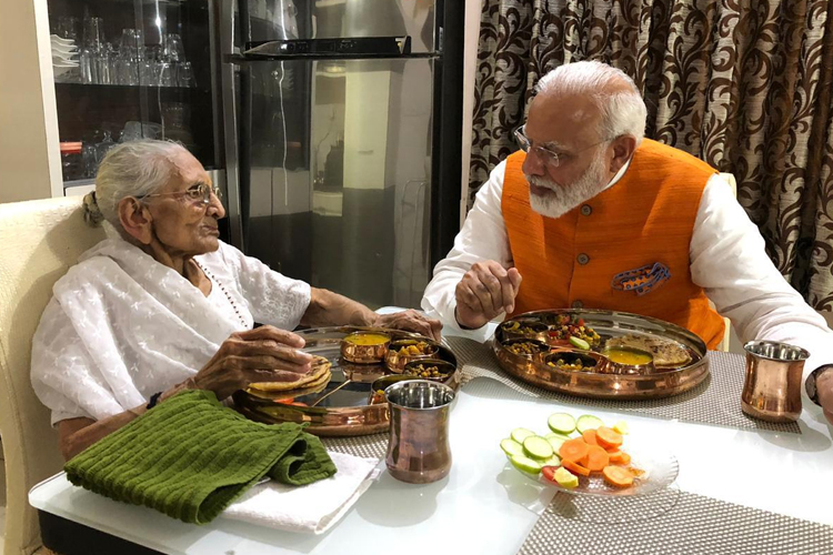 জন্মদিনে মায়ের সঙ্গে মধ্যাহ্নভোজে নরেন্দ্র মোদী। —নিজস্ব চিত্র