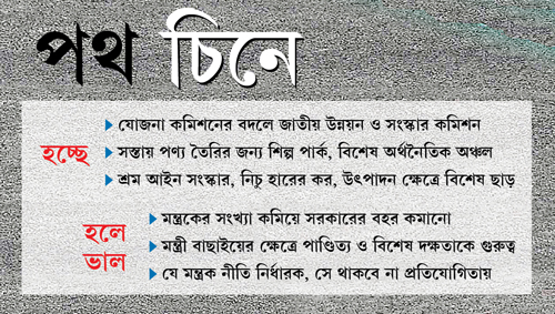 সরকারের বহর কমানোর কথাই ধরা যাক। চিনের জনসংখ্যা ১৩৫ কোটি। সরকারে মন্ত্রক রয়েছে ২২টি। ভারতের জনসংখ্যা চিনের থেকে ১২ কোটি কম হলেও মন্ত্রকের সংখ্যা চিনের থেকে ২৯টি বেশি। শিল্প মহলের সুপারিশ ছিল, মন্ত্রকের সংখ্যা কমানো হোক। রেল, বিমান, সড়ক পরিবহণ, জল পরিবহণের মতো মন্ত্রকগুলি মিশিয়ে দেওয়া হোক। বিদ্যুৎ মন্ত্রকের সঙ্গে কয়লা বা অপ্রচলিত শক্তি মন্ত্রক মিশে যাক। অনাবাসী মন্ত্রক বা ক্রীড়া ও যুব কল্যাণের অপ্রাসঙ্গিক মন্ত্রক বিলুপ্ত হোক। এই সব মন্ত্রক ছাঁটা হলে সরকারের ব্যয়ভার কমবে। লাল ফিতের ফাঁসও কাটবে।