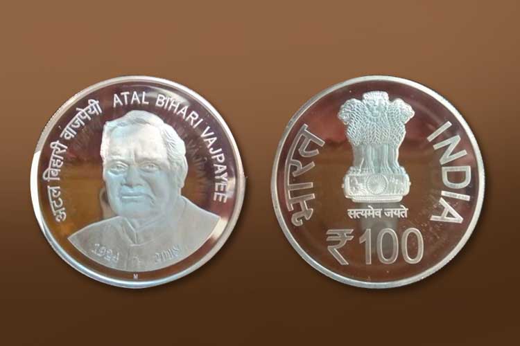 বাজপেয়ীর নামে নতুন ১০০ টাকার কয়েন। ছবি: টুইটার থেকে সংগৃহীত।