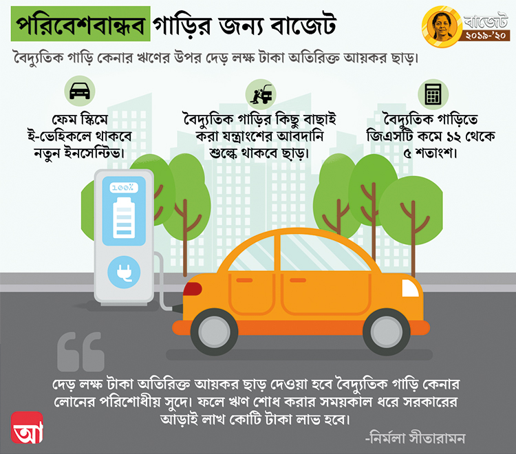 মোদী লক্ষ্য স্থির করেছেন, আগামী পাঁচ বছরে অর্থনীতির বহর এখনকার ২.৭ লক্ষ কোটি ডলার থেকে ৫ লক্ষ কোটি ডলারে নিয়ে যাবেন। সে জন্য আজ অর্থমন্ত্রী রেল, সড়ক, বন্দর, বিমানবন্দর, সাধ্যের মধ্যে থাকা আবাসনে বছরে ২০ লক্ষ কোটি টাকা লগ্নির মাত্রা ঠিক হয়েছে। বলা বহুল্য, এ জন্য বেসরকারি লগ্নির উপরেই ভরসা রাখা হয়েছে।