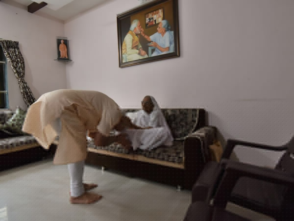 মায়ের কাছে আশীর্বাদ নিচ্ছেন মোদী।