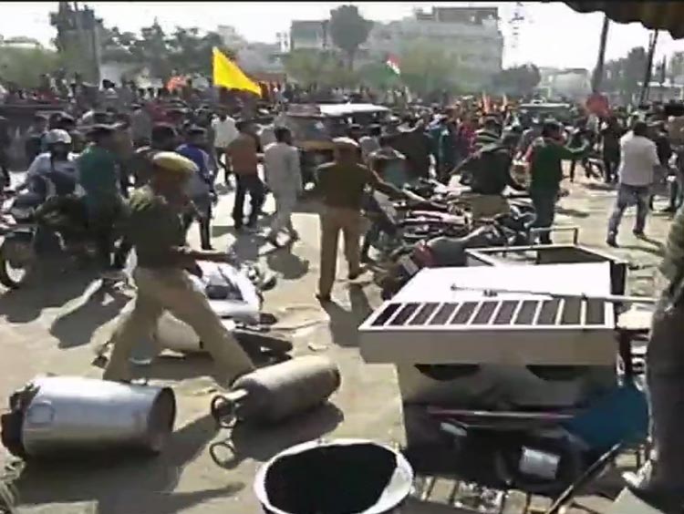 করণী সেনার তাণ্ডবে উত্তপ্ত উদয়পুর। বেশ কয়েকটি দোকানে চলল ভাঙচুর। ছবি:টুইটারের সৌজন্যে।