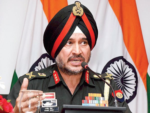 সাংবাদিক বৈঠকে ডিজিএমও রণবীর সিংহ। ছবি: পিটিআই।