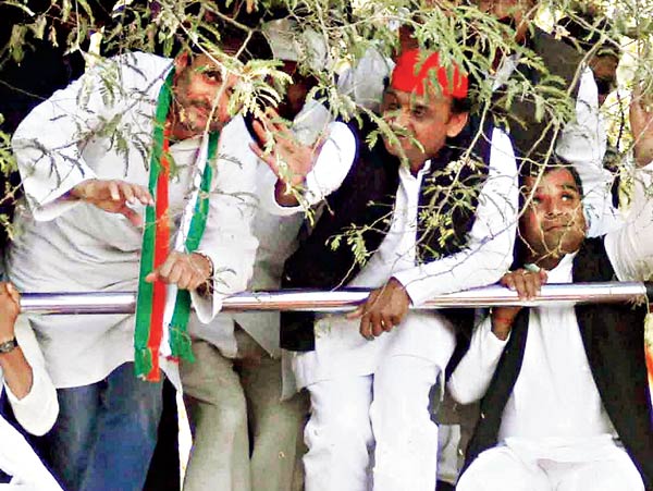 মিছিল এগোল। যেন শুরু হয়ে গেল বসন্ত উৎসব। হোলির তো বেশি দেরিও নেই। আনন্দ ভবনের ঠিক উল্টো দিকে একটা ‘শুদ্ধ শাকাহারী’ ভোজনালয়। তার সামনে হাতে দুটো গোলাপ নিয়ে দাঁড়িয়েছিল ইলাহাবাদ বিশ্ববিদ্যালয়ের পদার্থবিদ্যার ছাত্র মনোজ শ্রীবাস্তব। ধুলিধূসরিত চটি, কাঁধে ঝোলা। ভিড় ঠেলে হাতের গোলাপ দু’টি প্রাণপণে রাহুল আর অখিলেশের হাতে তুলে দিতে চাইছিল মনোজ। চিৎকার করে বলছিল, ‘‘রাহুল ভাইয়া, অখিলেশ ভাইয়া!’’ ঠিক যেন সিনেমা।