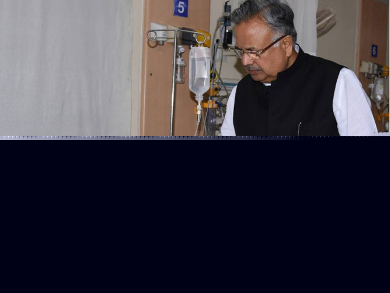 রায়পুরের হাসপাতালে জখম জওয়ানের সঙ্গে মুখ্যমন্ত্রী রমন সিংহ। —নিজস্ব চিত্র।