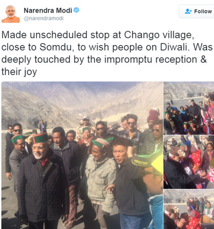সকালে ‘মন কি বাত’ অনুষ্ঠানে মোদী ভারতীয় সেনাবাহিনীকে অভিবাদন জানান। তাঁদের আত্মত্যাগের কথা স্মরণ করে দিওয়ালি উৎসবকে জওয়ানদের উদ্দেশেই উৎসর্গ করেন।’’