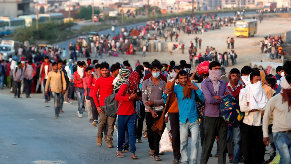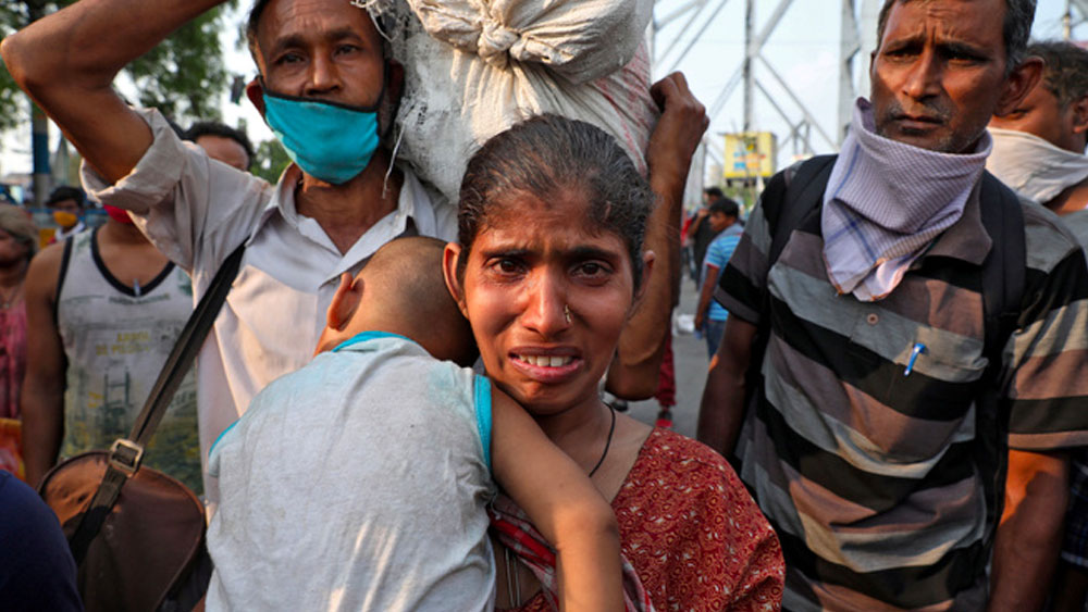 লকডাউনের গুঁতোয় নাজেহাল পরিযায়ী শ্রমিকরা। ছবি—পিটিআই।