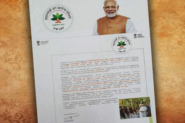 ভোটের মুখে সরকারের ‘গুণকীর্তন’-এ মোদীর নয়া ‘অস্ত্র’ চিঠি। পত্রবার্তার আপাত উদ্দেশ্য, ‘আয়ুষ্মান ভারত’ প্রকল্প বা প্রধানমন্ত্রী ‘জন আরোগ্য যোজনা’র (পিএমজেএওয়াই) সুফল সম্পর্কে সাধারণ মানুষকে ওয়াকিবহাল করানো। তার জন্য ইতিমধ্যেই সাড়ে সাত কোটি চিঠি ছাপিয়ে নাম ঠিকানা লিখে প্রস্তুত। বড় একটা অংশ পাঠিয়ে দেওয়া হয়েছে এবং নাগরিকদের অনেকে সেই চিঠি পেতেও শুরু করেছেন। কিন্তু আদপে শুধু আয়ুষ্মান ভারত নয়, দু’পাতার ওই চিঠিতে ‘প্রধানমন্ত্রী আবাস যোজনা’, ‘প্রধানমন্ত্রী উজ্জ্বলা যোজনা’, ‘সৌভাগ্য যোজনা’, প্রধানমন্ত্রী জীবন জ্যোতি বিমা যোজনার মতো প্রকল্পের বিষয়বস্তুও থাকছে চিঠিতে। চিঠির খামের উপর মোদীর ছবি দিয়ে পিএমজেএওয়াই প্রকল্পের লোগো।