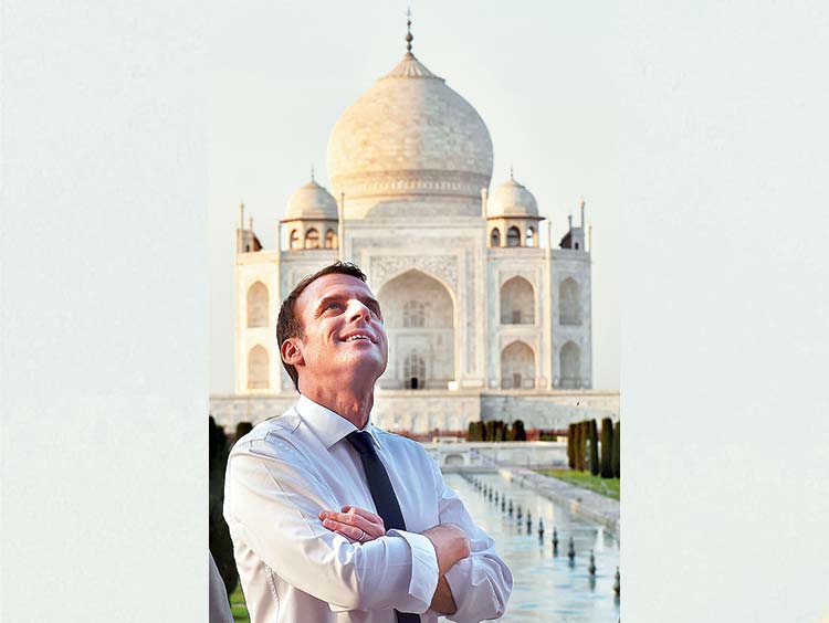 আশ্চর্য: তাজমহলের সামনে ফ্রান্সের প্রেসিডেন্ট ইমানুয়েল মাকরঁ। তিনি যাওয়ার