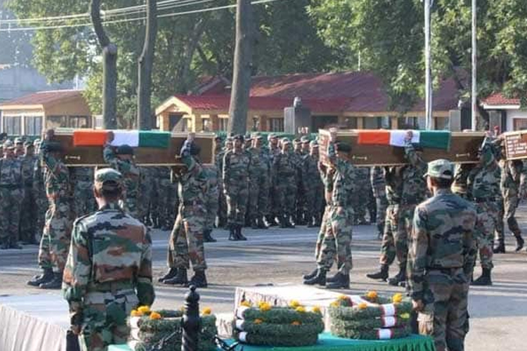উরিতে জঙ্গি হামলায় নিহত জওয়ানকে শেষ শ্রদ্ধা। ফাইল চিত্র।
