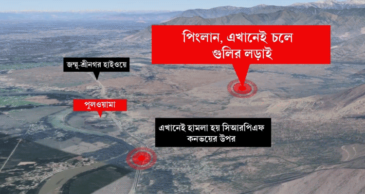 পুলওয়ামার লেথপোরায় যেখানে সিআরপি-র উপরে হামলা হয়েছিল তার ১০ কিলোমিটার দূরে পিংলিশ এলাকায় গত কাল রাতে জঙ্গি গতিবিধির খবর পায় বাহিনী। আজ ভোরে অভিযান শুরু হয়। প্রায় আঠারো ঘণ্টা সংঘর্ষ চলে। সেনার দাবি, নিহত তিন জঙ্গির মধ্যে রয়েছে কামরান ও জইশ জঙ্গি হিলাল আহমেদ। তৃতীয় জঙ্গির পরিচয় এখনও জানা যায়নি। (রাতে একটি সূত্র দাবি করে, এই জঙ্গি রশিদ গাজ়ি হলেও হতে পারে।)