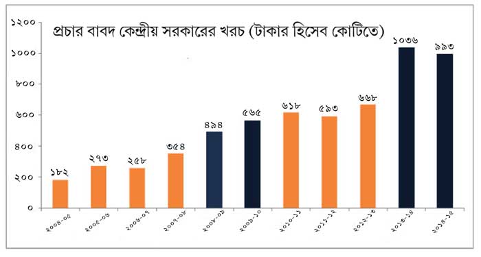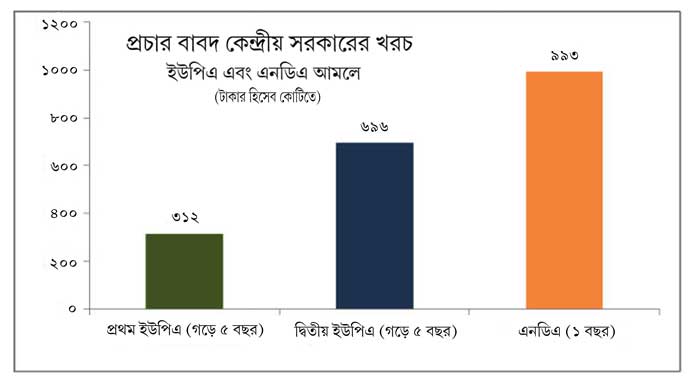 সরকারি পরিসংখ্যানই বলছে, নরেন্দ্র দামোদরদাস মোদীর নেতৃত্বাধীন বর্তমান এনডিএ সরকারের প্রথম এক বছরে প্রায় হাজার কোটি টাকা খরচ হয়েছে শুধুমাত্র বিজ্ঞাপনী প্রচারে!