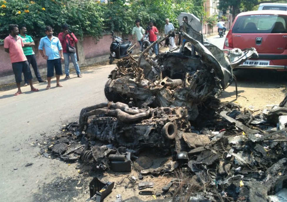 এই ভাবে গাড়িটি পুড়ে ছাই হয়ে গিয়েছে। ছবি: সংগৃহীত।