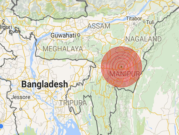 ইম্ফলে ভেঙে পড়েছে বাড়ি। ছবি: টুইটার।