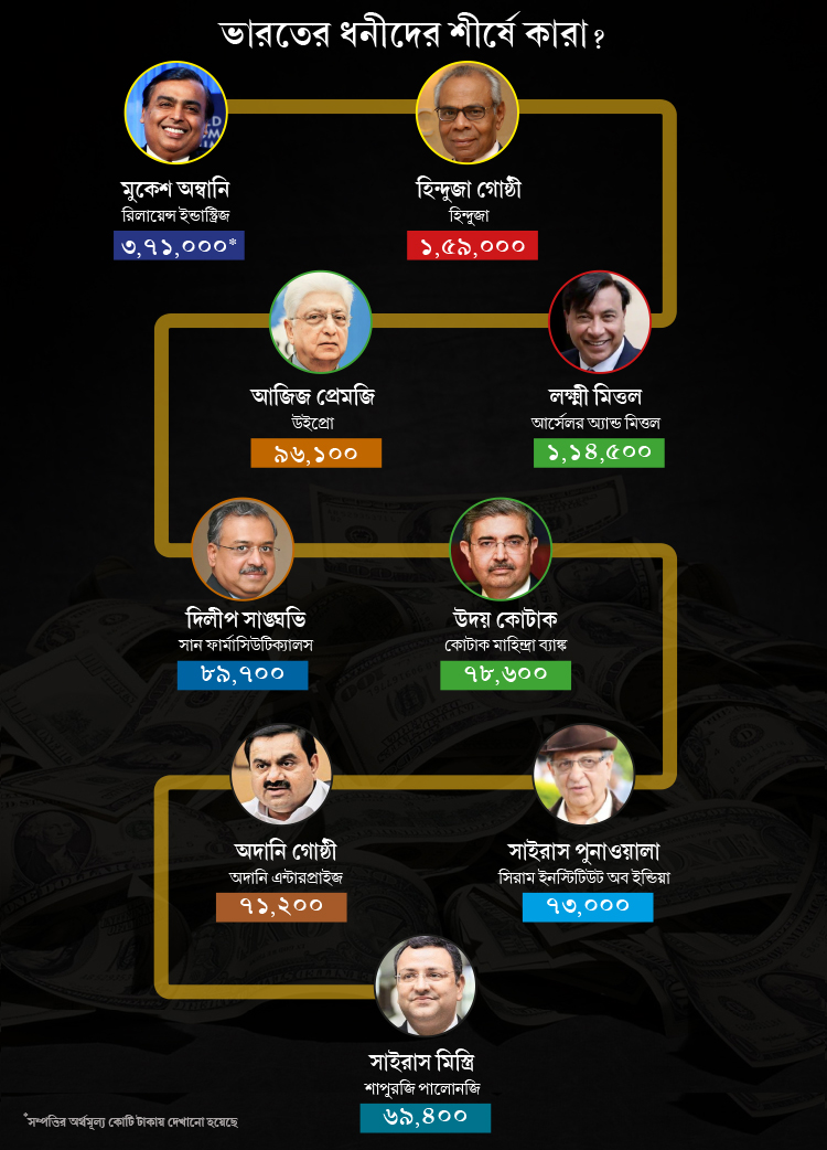 তবে এই প্রথম নয়, এই নিয়ে টানা সাত বছর দেশের ধনীতম ব্যক্তি হিসেবে নিজেকে ধরে রাখলেন মুকেশ। গত এক বছরে তাঁর কোম্পানি রিলায়েন্স ইন্ডাস্ট্রিজের শেয়ারের মূল্য বেড়েছে প্রায় ৪৫ শতাংশ। তাই এই বছরও তাঁর সঙ্গে প্রতিদ্বন্দ্বিতা করার জায়গাতেও পৌঁছতে পারেনি কেউই। তাঁর মোট সম্পত্তির পরিমাণ পরবর্তী তিন ধনী ভারতীয়ের ( হিন্দুজা গোষ্ঠী, মিত্তল গোষ্ঠী, আজিজ প্রেমজি) মোট সম্পত্তির থেকেও বেশি।