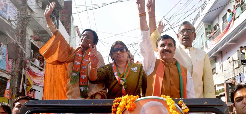বিজেপির হয়ে প্রচার করছিলেন নিজের কেন্দ্রের বাইরেও। তবে তখনও বোঝা যায়নি, পরিষদীয় দলের বৈঠকে মুখ্যমন্ত্রী হিসেবেও উঠে আসবে তাঁর নাম। —ফাইল চিত্র।