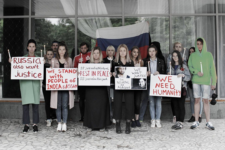 প্রিয় বন্ধুর মৃত্যু নাড়িয়ে দিয়ে গিয়েছে তাঁদের। তাই, নীলোৎপল দাস আর অভিজিৎ নাথের মৃত্যুর ন্যায়বিচার চেয়ে রাশিয়াতেও প্ল্যাকার্ড হাতে তুলে নিয়েছেন তাঁরা। ঘটনার ছ’দিন পরেও প্রাণোচ্ছল নীলোৎপলের না থাকাটা মানতে পারছেন না কেউ।