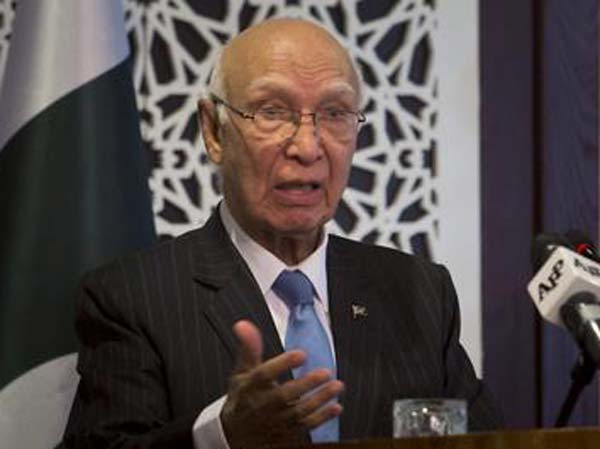 দিল্লির বিরুদ্ধে রাষ্ট্রপুঞ্জে অভিযোগ করার হুমকি সরতাজ আজিজের।— পিটিআইয়ের ফাইল চিত্র