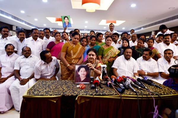 বিধায়কদের সঙ্গে দেখা করার পর সাংবাদিকদের সামনে শশিকলা।