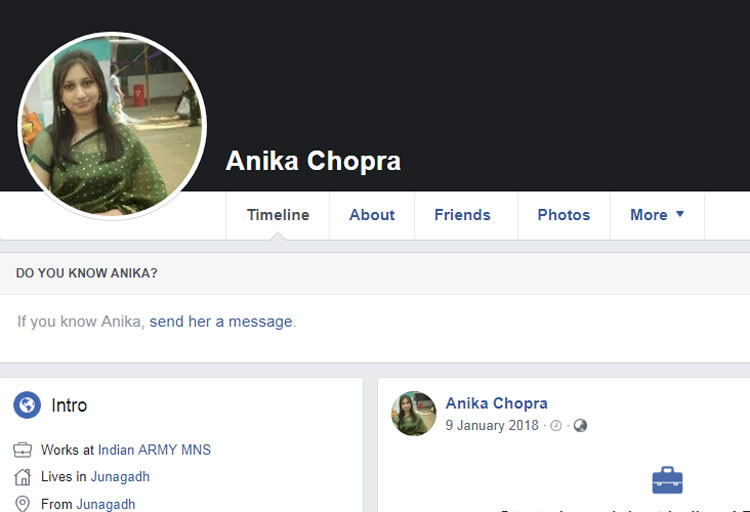 সোমবীর জানিয়েছেন, ওই মহিলার নাম অনিকা চোপড়া। ২০১৬ সালে ফেসবুকেই অনিকার সঙ্গে তাঁর পরিচয়। অনিকাই প্রথমে তাঁকে বন্ধুত্বের অনুরোধ পাঠায়। পরে তার থেকে সোমবীর জানতে পারেন, অনিকা মিলিটারি নার্সিং-এর আর্মি ক্যাপ্টেন। একজন আর্মি অফিসার যেচে তাঁর সঙ্গে বন্ধুত্ব করতে চাইছে, আপ্লুত হয়ে পড়েন সোমবীর।