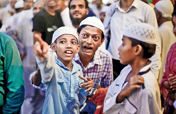 চাঁদের পানে। শুক্রবার থেকে শুরু রমজান মাস। বৃহস্পতিবার চাঁদে চোখ খুদেরও। নয়াদিল্লিতে। ছবি: রয়টার্স।