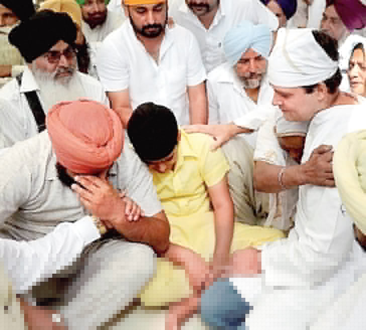 পরিবারের সঙ্গে দেখা করেন রাহুল। সুরজিতের ঋণ মকুব করানোর চেষ্টা করবেন বলে জানিয়েছেন তিনি। ছবি: পিটিআই।