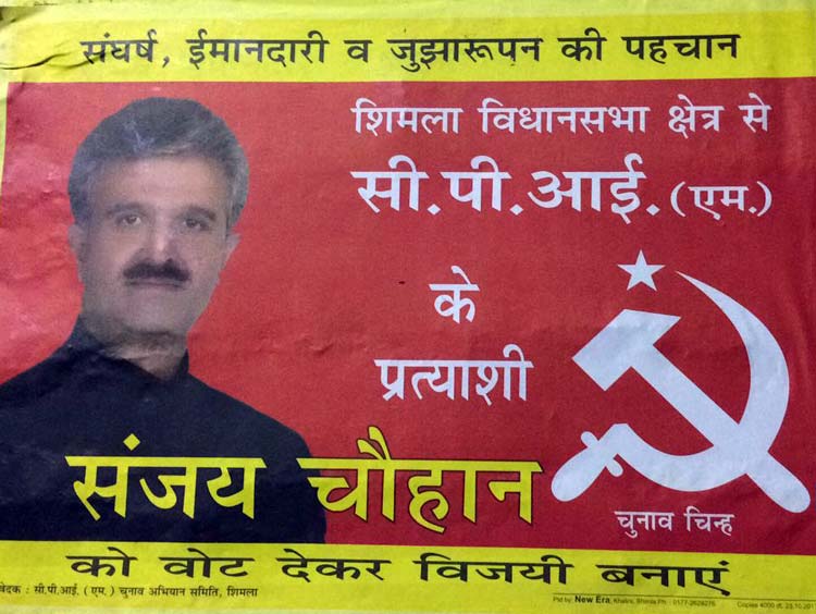 মাঝরাতে হোটেলে ঢোকার মুখে পোস্টারটা নজরে এসেছিল। লালের উপর সাদায় লেখা, শিমলা বিধানসভা কেন্দ্রে সিপিএম প্রার্থী সঞ্জয় চৌহানকে ভোট দিয়ে জয়ী করুন। পশ্চিমবঙ্গ থেকে কয়েক হাজার কিলোমিটার দূরে হিমাচল প্রদেশে ওই পোস্টারের কথা শুনে অনেকেরই বিস্ময় জাগতে পারে— শিমলায় সিপিএম! কিন্তু, এটাই সত্যি।