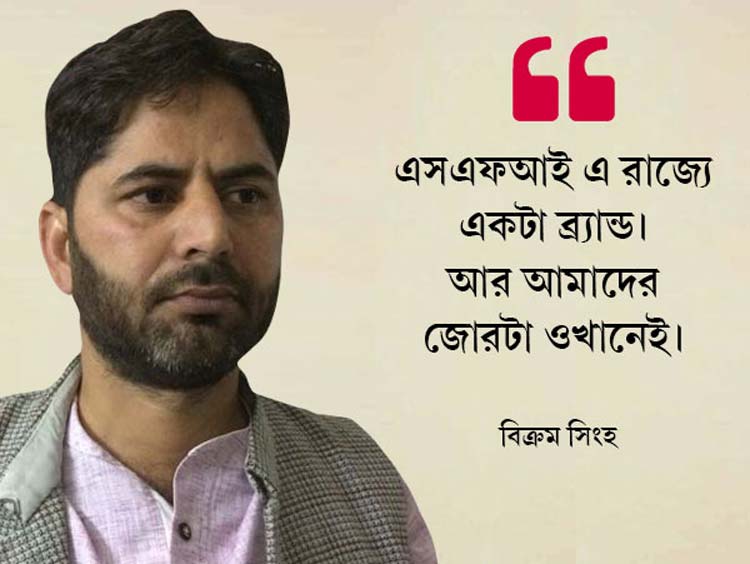 এসএফআইয়ের বর্তমান সর্বভারতীয় সম্পাদক বিক্রম সিংহ এই হিমাচলের ছেলে। তাঁর পড়াশোনা এবং ছাত্র রাজনীতির গোটাটাই এ রাজ্যে। বাংলা, কেরল, ত্রিপুরাতে দল এবং সংগঠনের প্রভাব বেশি বলে সর্বভারতীয় ক্ষেত্রে এই তিন রাজ্য থেকেই মূলত নেতা মনোনয়ন বা নির্বাচন করা হয়। এসএফআইয়ের সর্বভারতীয় সম্পাদক হিসাবে সেই জায়গায় বিক্রমের নির্বাচিত হওয়ার বিষয়টি-ই বুঝিয়ে দেয় হিমাচল প্রদেশে তাঁদের সংগঠন কতটা মজবুত।
