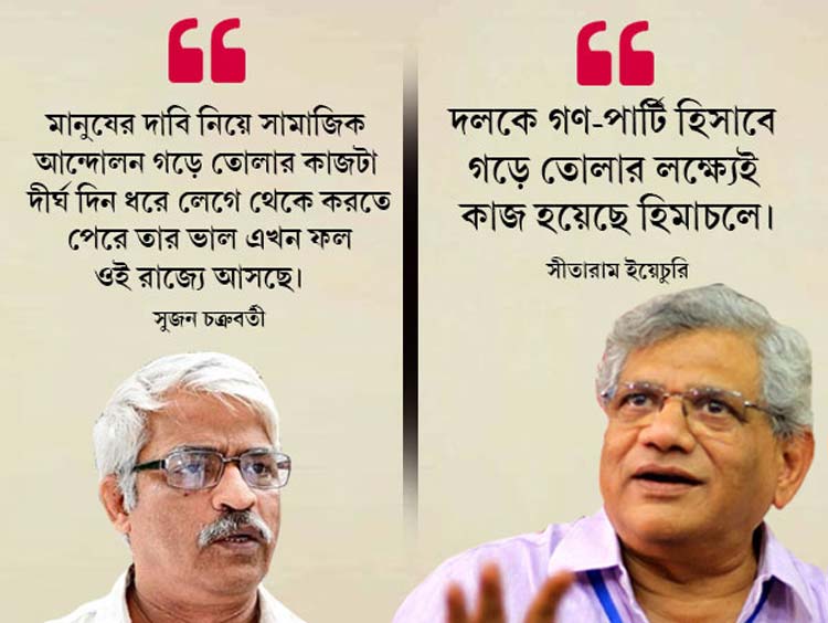 রাজ্য সম্পাদক মণ্ডলীর সদস্য সুজন চক্রবর্তী বলেন, ‘‘হিমাচল প্রদেশে রাতারাতি কিছু হয়নি। আমি যখন এসএফআইয়ের সর্বভারতীয় সম্পাদক, তখন হিমাচলের প্রথম সারির অনেক নেতাই জেলে ছিলেন।’’ তিনি আরও বলেন, ‘‘মানুষের দাবি নিয়ে সামাজিক আন্দোলন গড়ে তোলার কাজটা ওরা দীর্ঘ দিন ধরে লেগে থেকে করতে পেরেছেন। এখন তার ভাল ফল ওই রাজ্যে আসছে। হিমাচল প্রদেশ, রাজস্থান বা তামিলনাড়ুতে সামাজিক আন্দোলন গড়ে কমিউনিস্টরা জমি তৈরি করতে পারছে সেটা সর্বত্রই আমাদের পক্ষে আশার কথা।’’
