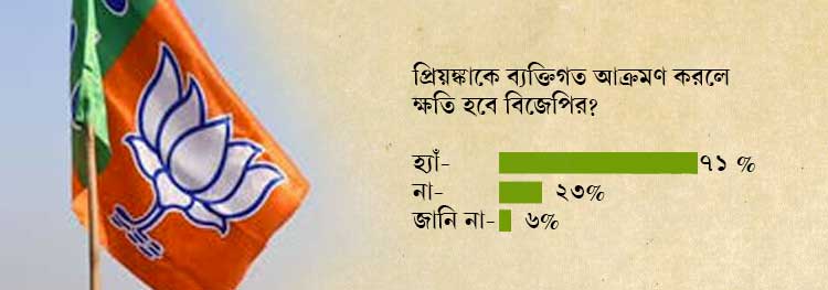 প্রিয়ঙ্কার রাজনীতিতে নামার খবর সামনে আসার পর থেকেই একটি শিবির থেকে লাগাতার ব্যক্তিগত আক্রমণ করা হচ্ছে তাঁকে। সেই প্রশ্নটিও ছিল সমীক্ষায়। তাঁকে ব্যক্তিগত আক্রমণ করলে বিজেপির ক্ষতি হবে কি না, এই প্রশ্নের উত্তরে ৭১ শতাংশ মানুষ জানিয়েছেন, ক্ষতি হবে বিজেপির। ২৩ শতাংশ মানুষ জানিয়েছেন বিজেপির কোনও ক্ষতি হবে না।