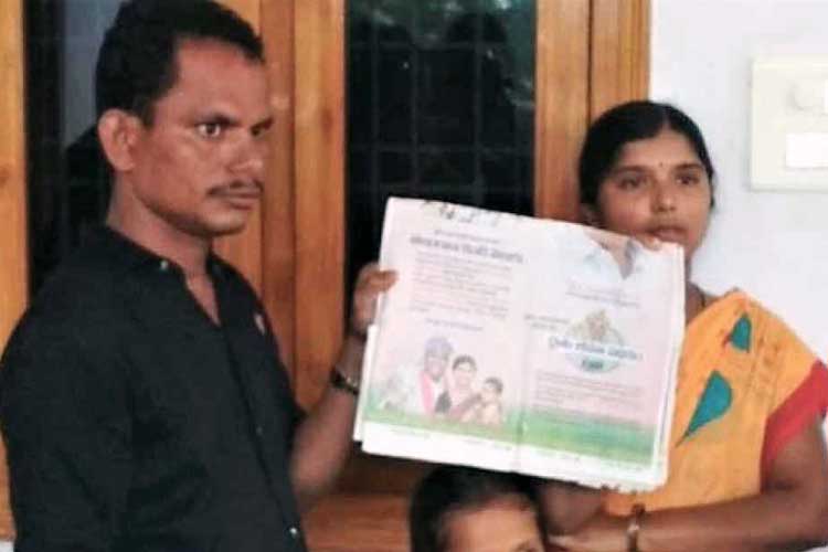 অন্যের ছবি দেওয়া সেই বিজ্ঞাপন দেখাচ্ছেন দম্পতি। ছবি: সংগৃহীত